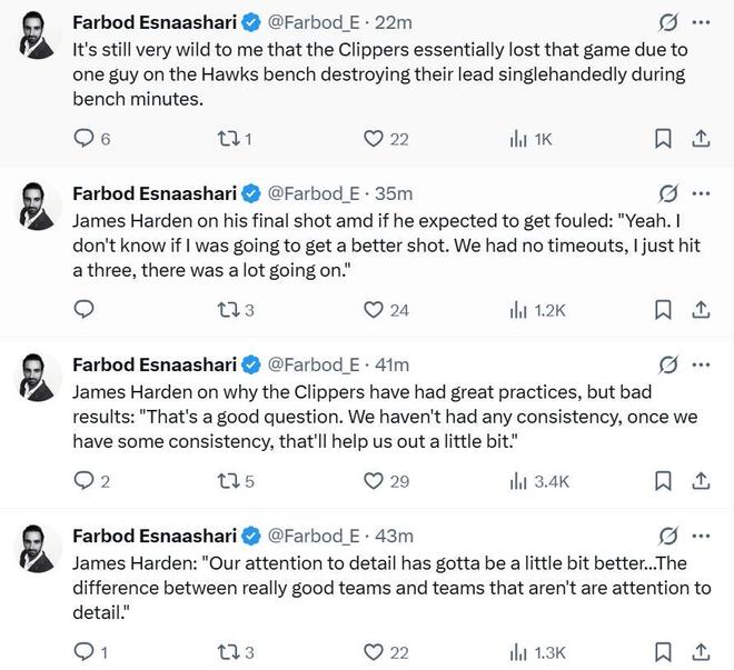 空砍三双难阻快船五连败 哈登:我们必须更加注重细节