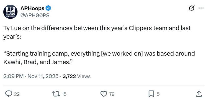 赛后谈及球队5连败时,泰伦卢坦言:“从训练营开始,我们的一切就是围绕小卡、比尔与哈登,我们只能坚持下去,等迎回一些球员后,情况可能会有所不同。”