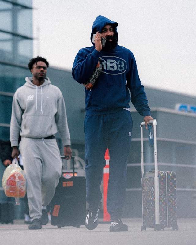 而在这当中,哈登推着行李正在打电话,一脸严肃的表情,不知道是打电话的缘故,还是对球队近期表现不佳。哈登近些年效力的球队总是遭遇伤病困扰,本赛季才开始,比尔就赛季报销,莱昂纳德还是一个未知数。而在本赛季,哈登的表现还是非常不错的,场均可以拿到23.4分8.9助攻,可他不再是火箭登,无法一个人带队去赢下比赛。