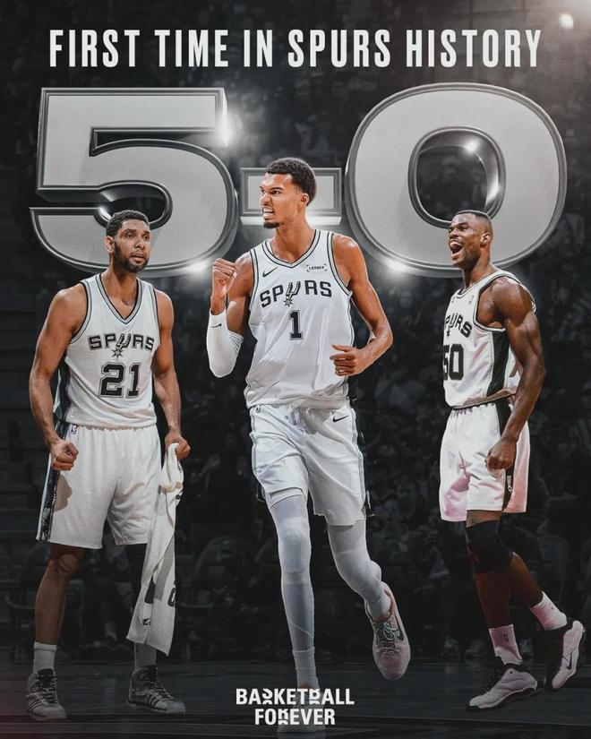 马刺开季5胜0负,创造队史最佳开局。没错,GDP当年也没做到过开季5胜0负。本赛季前五场比赛,文班亚马场均30.2分14.6篮板3.4助攻4.8盖帽!NBA收视率增长,离不开文班的炸裂表现。如今文班休战,对NBA也是重大打击。