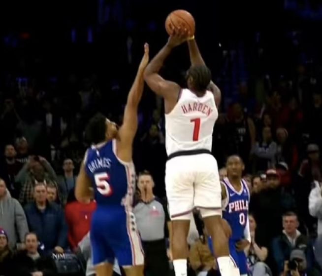 在比赛最后7秒钟的时候,快船落后2分握有进攻球权,哈登三分线外持球面对格莱姆斯的防守,连续晃动直接三分出手,球未能命中。可在出手之后,哈登向着裁判不断抱怨,认为格莱姆斯打到他的手肘,从慢镜头回放的确是打到了,也影响了哈登的出手。只不过裁判并没有吹罚犯规,随后哈登底角再次得到球,或许是心态受到影响,依然没有命中,快船也就此输掉了比赛。